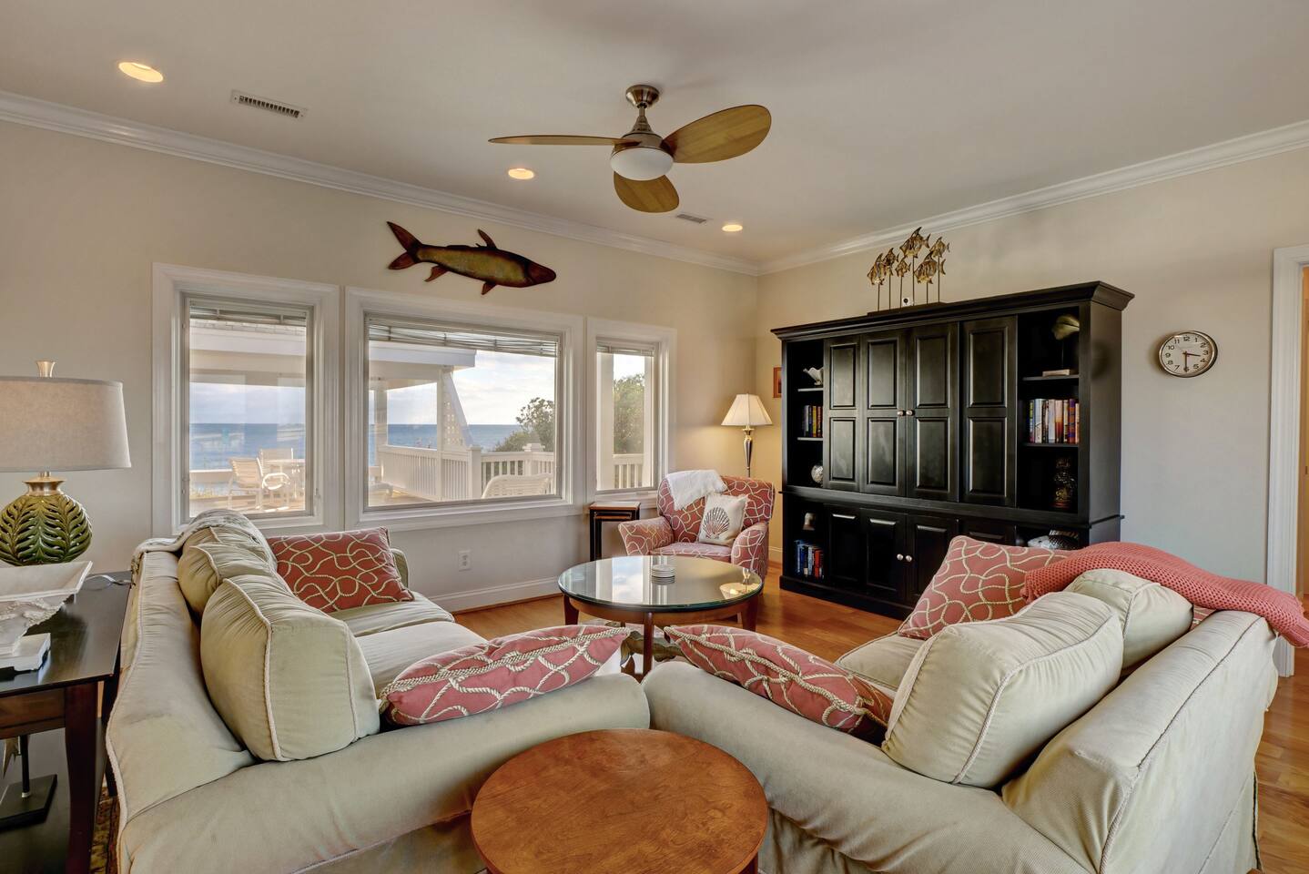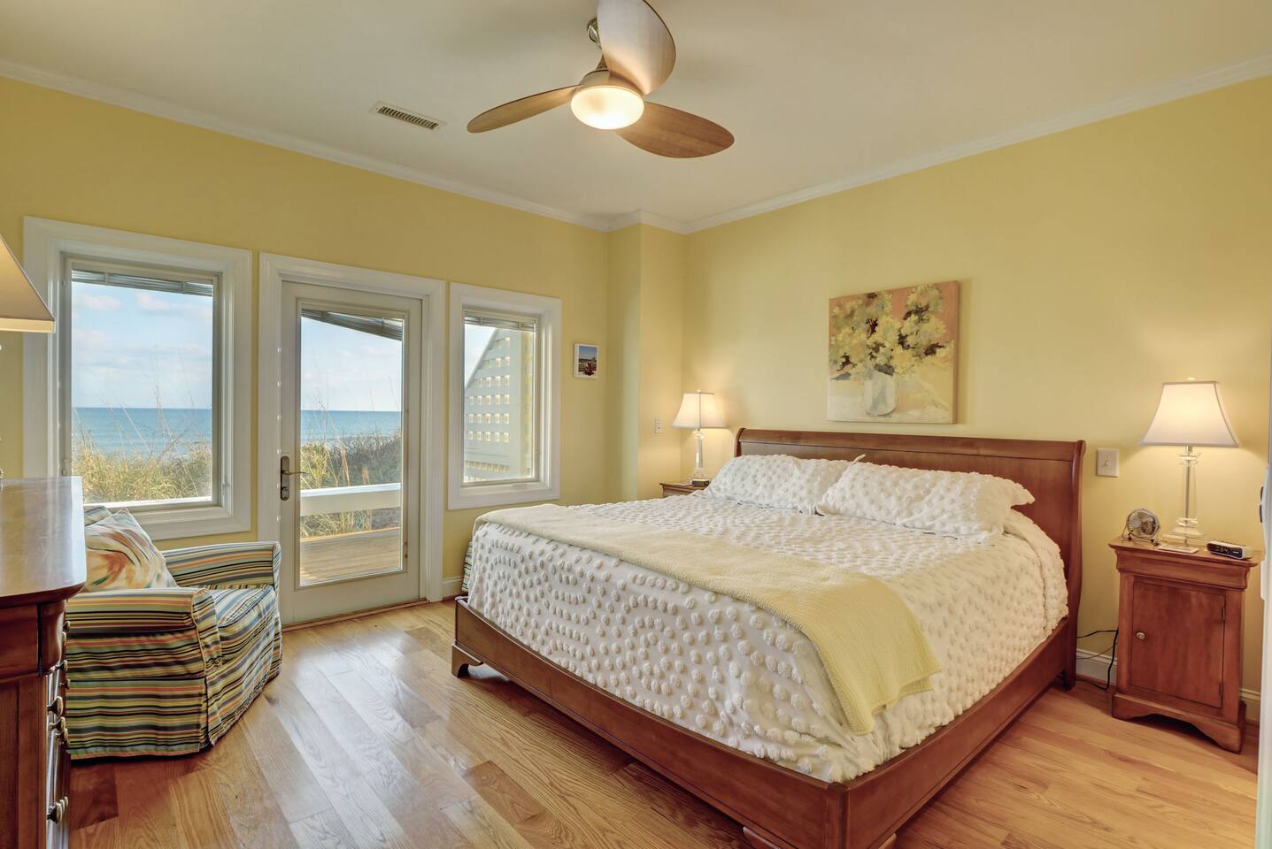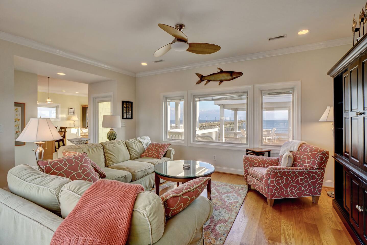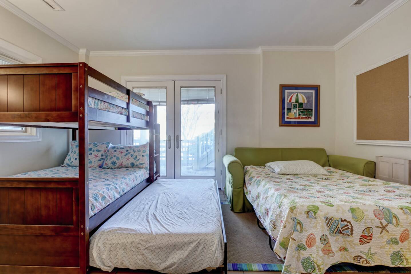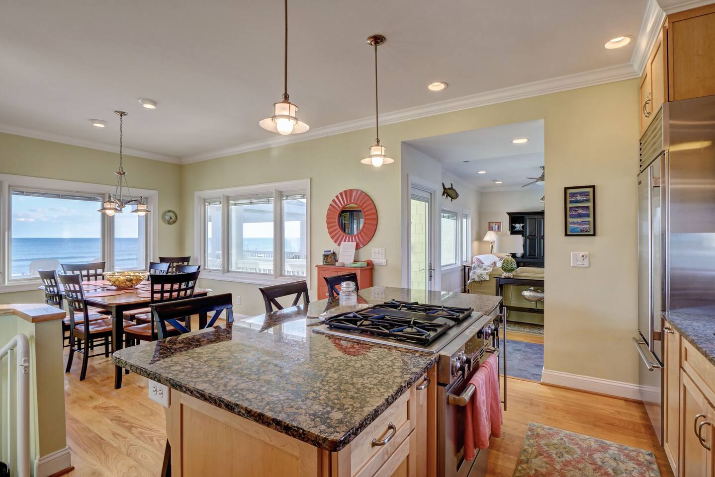 ⦿ Amazing, spacious deck with a wonderful gazebo right at the beach ⦿ View the ocean from the living room, dining room, and two bedrooms ⦿ Outdoor shower makes you and a beach day more special ⦿ Cable TV in the living room and other 3 out of 4 bedrooms. Smart TVs are available in the living room and Kid's bedroom. You can sign in to your account to watch your personalized movies and TV shows ⦿ The downstairs bedroom has a Full over Full bunk bed with twin trundle and a sofa bed that 6 people can sleep comfortably ⦿ Parking lot is suitable for up to 6 cars ⦿ We’re dog-friendly, but can’t allow other pets like cats due to allergies. We are happy to welcome your dog! Just ask, and be prepared to tell us about your furry family member. For our guests' comfort and enjoyment, we do not allow dogs on beds or sofas at any time. Pet hair is difficult to remove from linens and upholstery, and we want everyone to be able to enjoy their stay ⦿ Everything you need to enjoy your stay is provided, including towels, LINENS, a fully stocked kitchen, exquisite décor, and the perfect location. So obviously no extra fees for sheets and towels ⦿ If you need a break from mother nature, we have a fully stocked activity closet with games, books, and puzzles. Or you can take a quick walk into town and enjoy the finest dining, shopping, and nightlife on the island! ⦿A charcoal grill is provided, you need to bring your charcoal ⦿The most important thing to us is your experience. We will do everything we can to ensure you have the best vacation possible