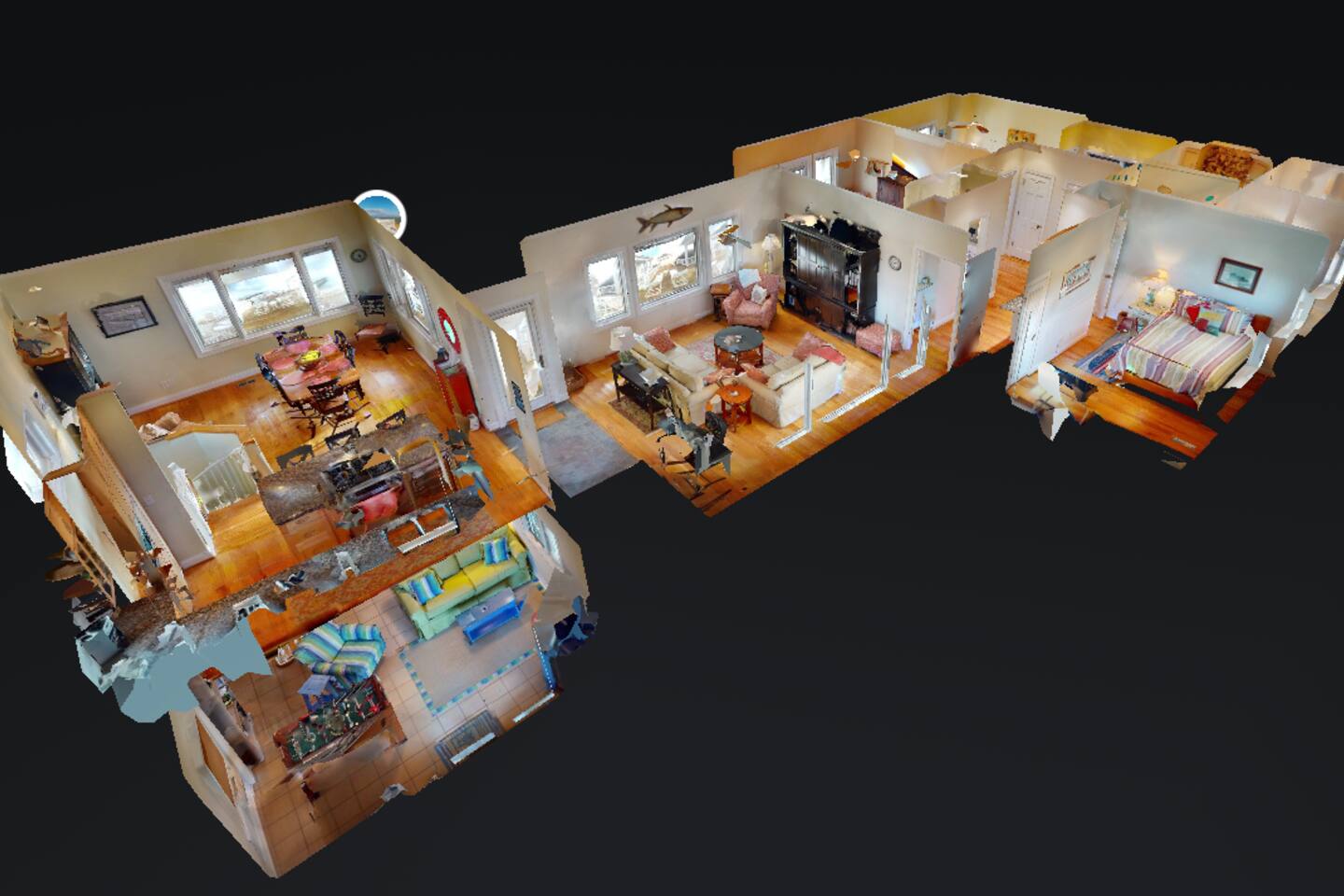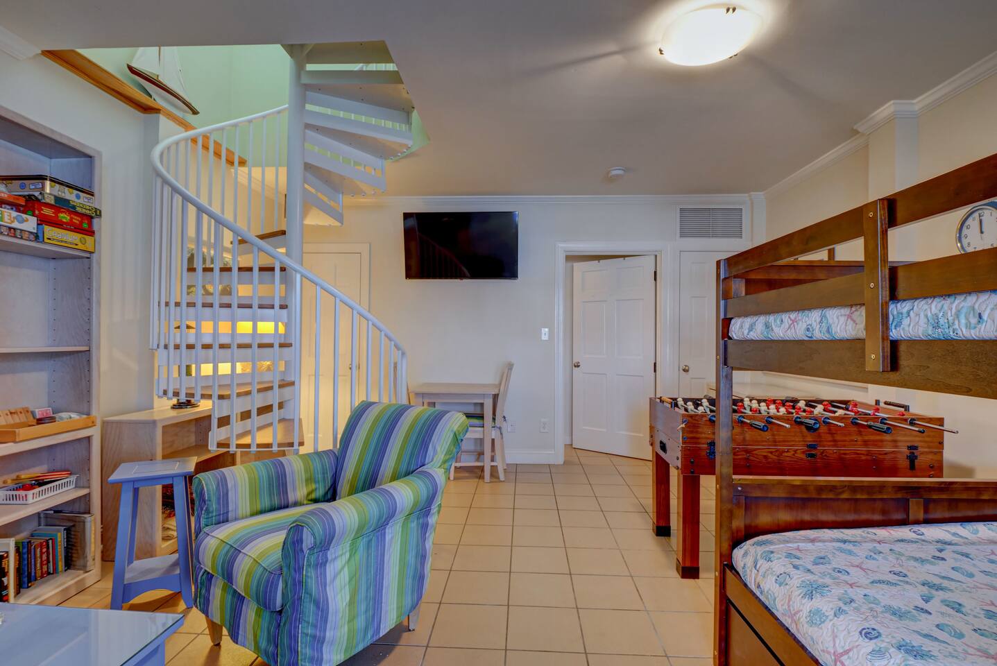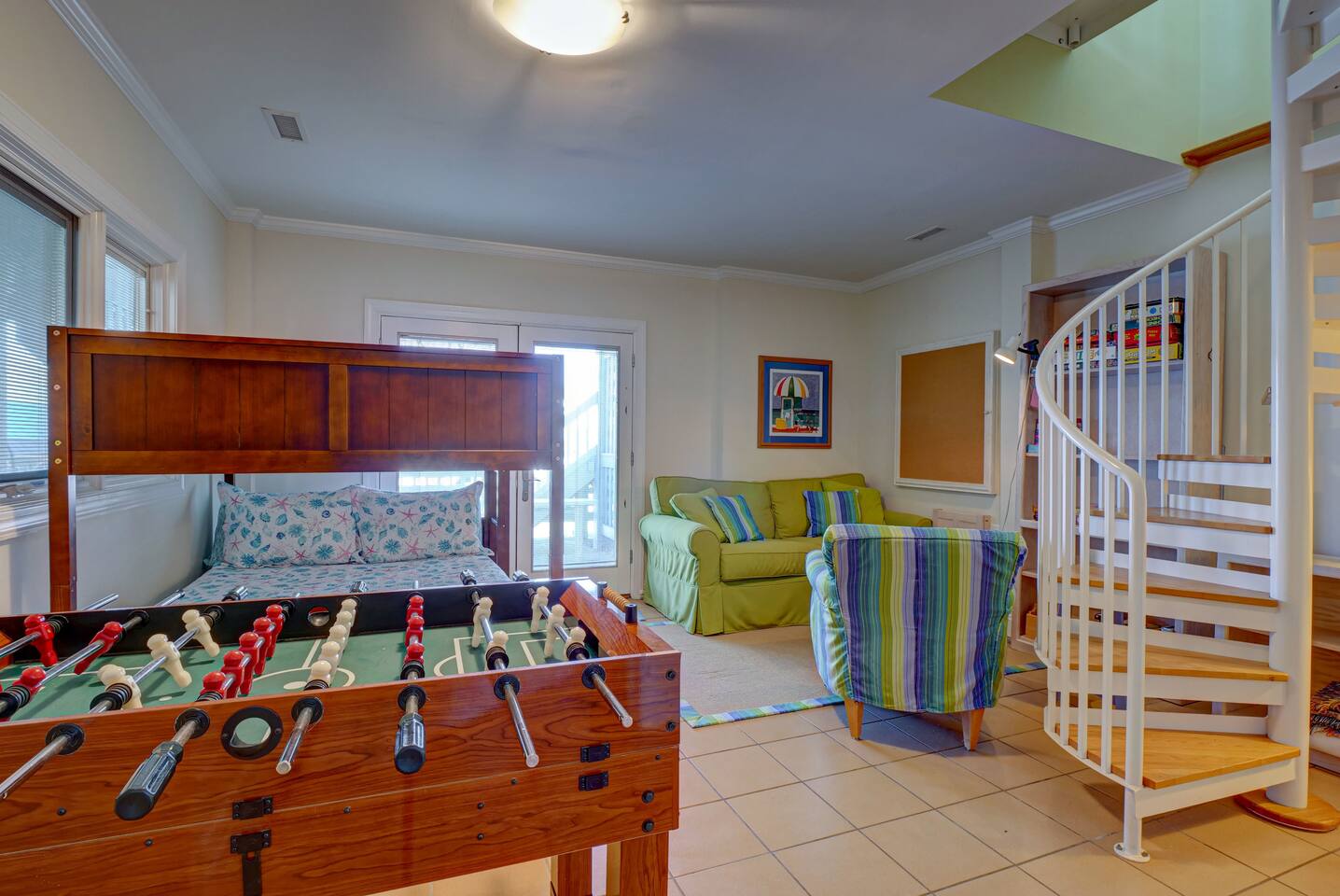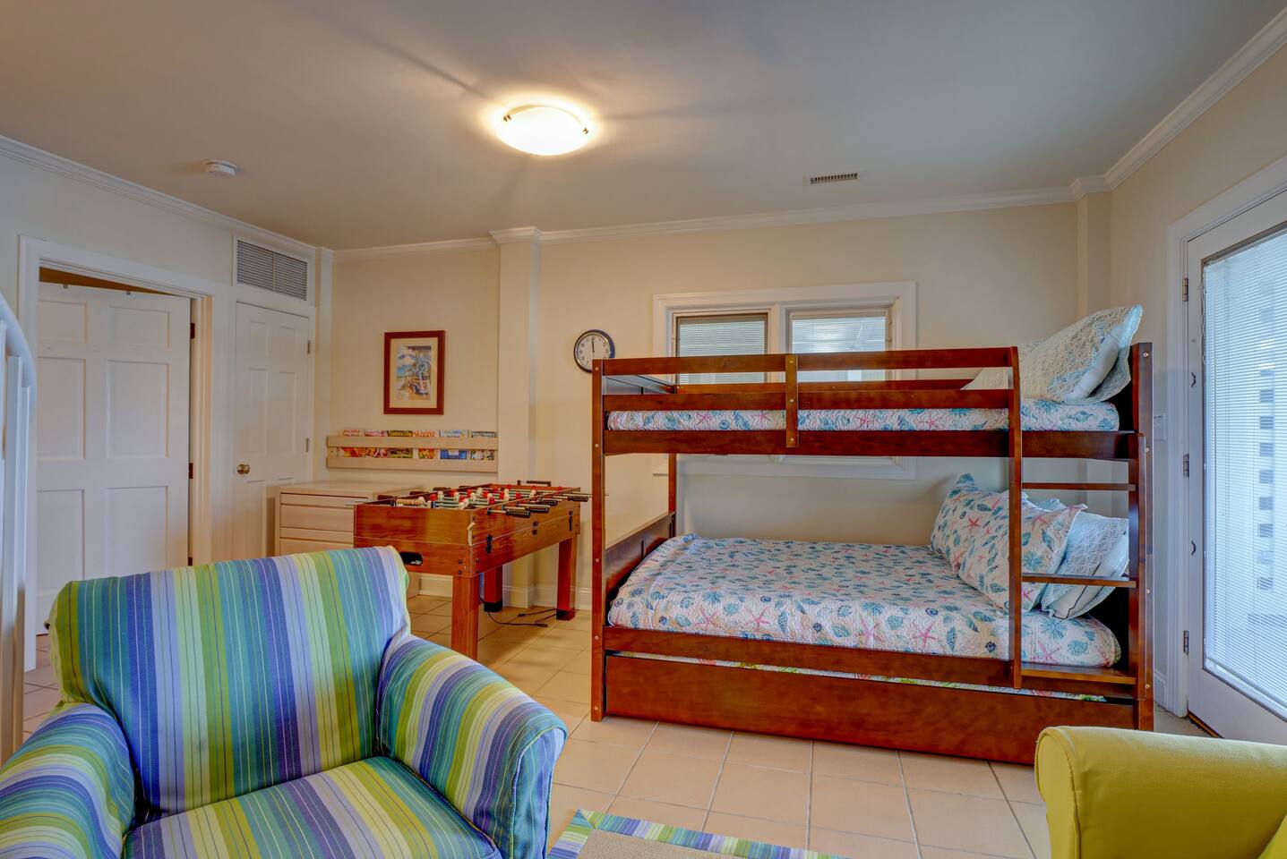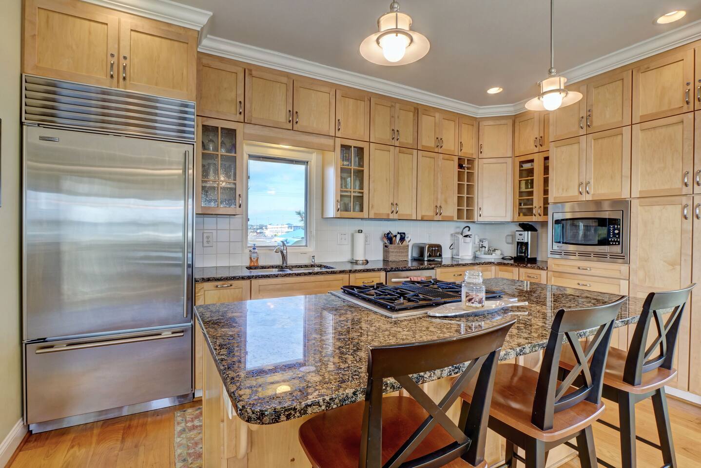 ⦿ Amazing, spacious deck with a wonderful gazebo right at the beach ⦿ View the ocean from the living room, dining room, and two bedrooms ⦿ Outdoor shower makes you and a beach day more special ⦿ Cable TV in the living room and other 3 out of 4 bedrooms. Smart TVs are available in the living room and Kid's bedroom. You can sign in to your account to watch your personalized movies and TV shows ⦿ The downstairs bedroom has a Full over Full bunk bed with twin trundle and a sofa bed that 6 people can sleep comfortably ⦿ Parking lot is suitable for up to 6 cars ⦿ We’re dog-friendly, but can’t allow other pets like cats due to allergies. We are happy to welcome your dog! Just ask, and be prepared to tell us about your furry family member. For our guests' comfort and enjoyment, we do not allow dogs on beds or sofas at any time. Pet hair is difficult to remove from linens and upholstery, and we want everyone to be able to enjoy their stay ⦿ Everything you need to enjoy your stay is provided, including towels, LINENS, a fully stocked kitchen, exquisite décor, and the perfect location. So obviously no extra fees for sheets and towels ⦿ If you need a break from mother nature, we have a fully stocked activity closet with games, books, and puzzles. Or you can take a quick walk into town and enjoy the finest dining, shopping, and nightlife on the island! ⦿A charcoal grill is provided, you need to bring your charcoal ⦿The most important thing to us is your experience. We will do everything we can to ensure you have the best vacation possible
