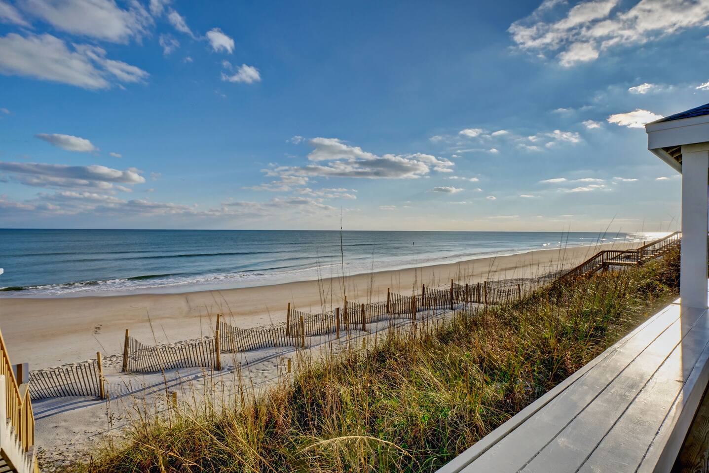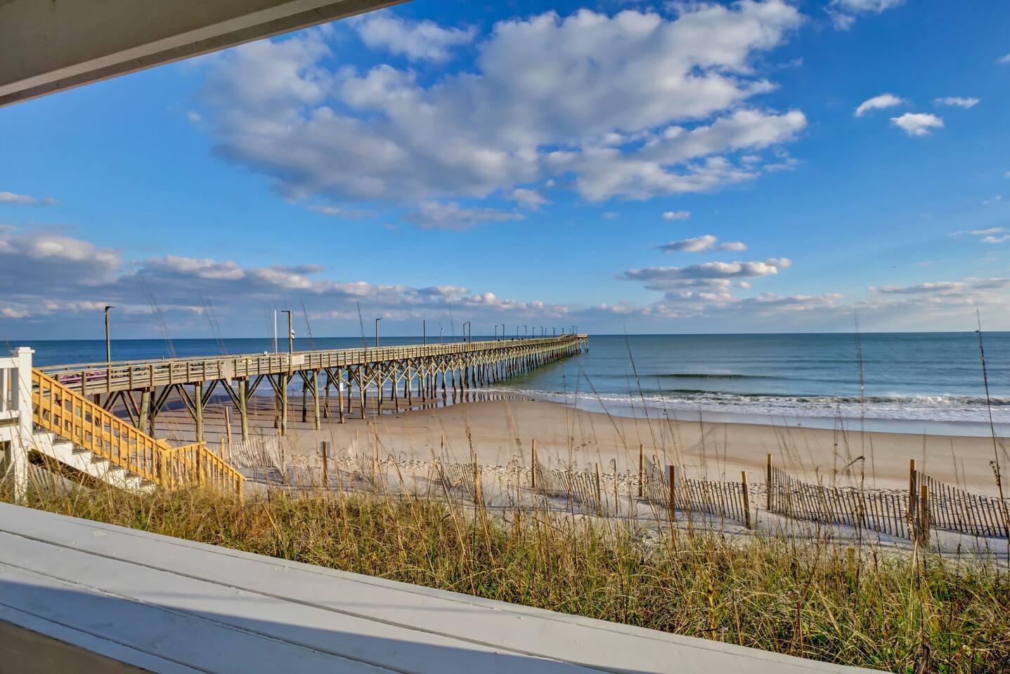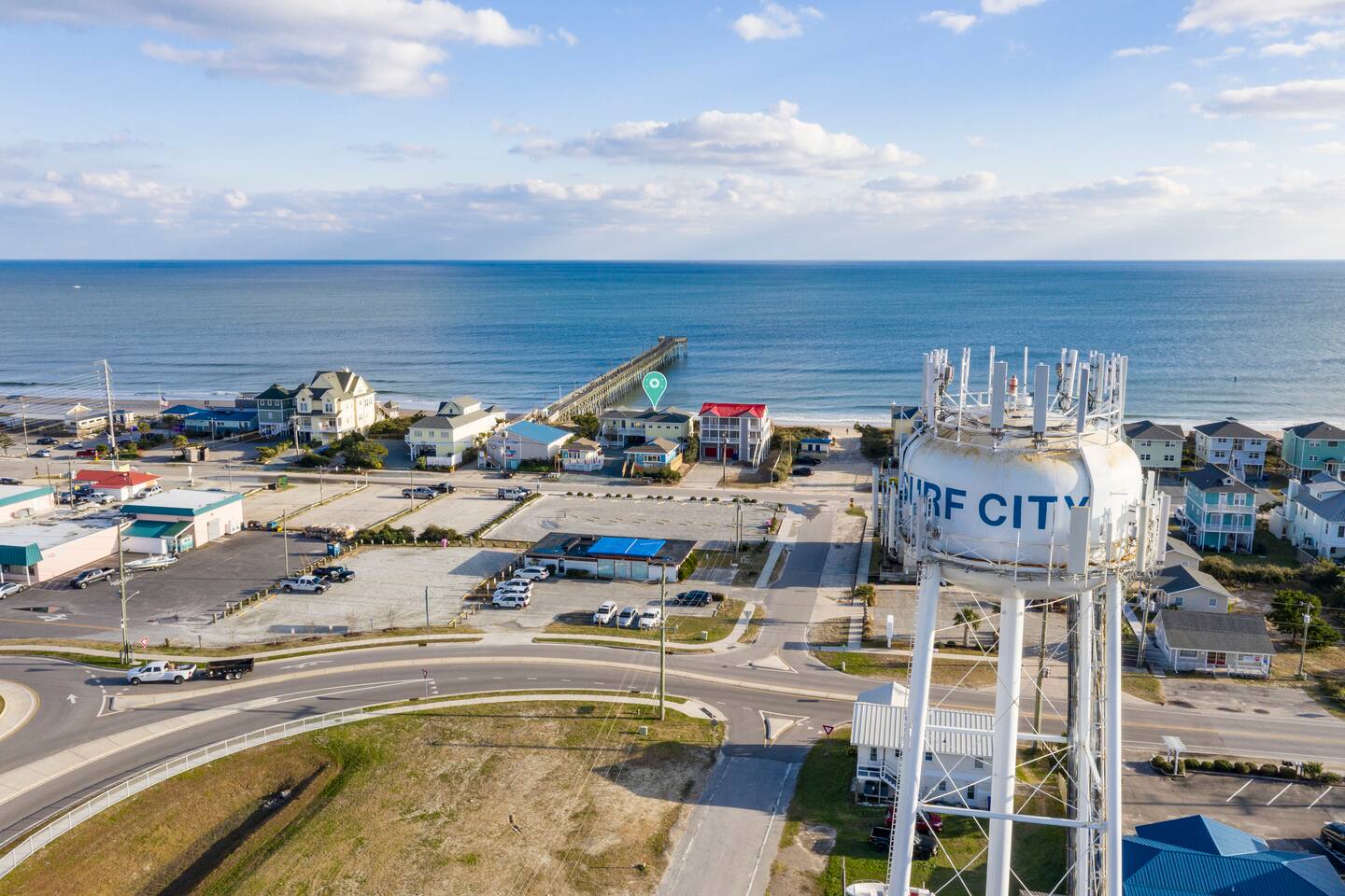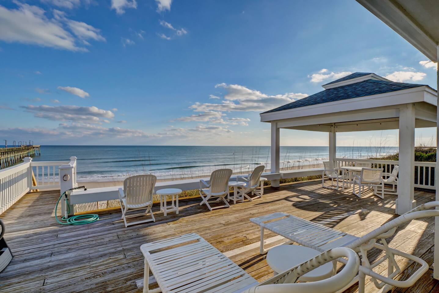 Excellent views of the ocean from the spacious deck in the middle of the island. Enjoy your morning coffee & watch the dolphins swim by as you relax in the wonderful gazebo. Beach & pier can be had from the 3 sundecks complete with hot tub, deck furniture & benches. Transportation is not needed as Surf City Heart is centrally located within walking distance of restaurants, shopping, groceries, parks/playground boat tours and more. Direct private beach access from the back deck.