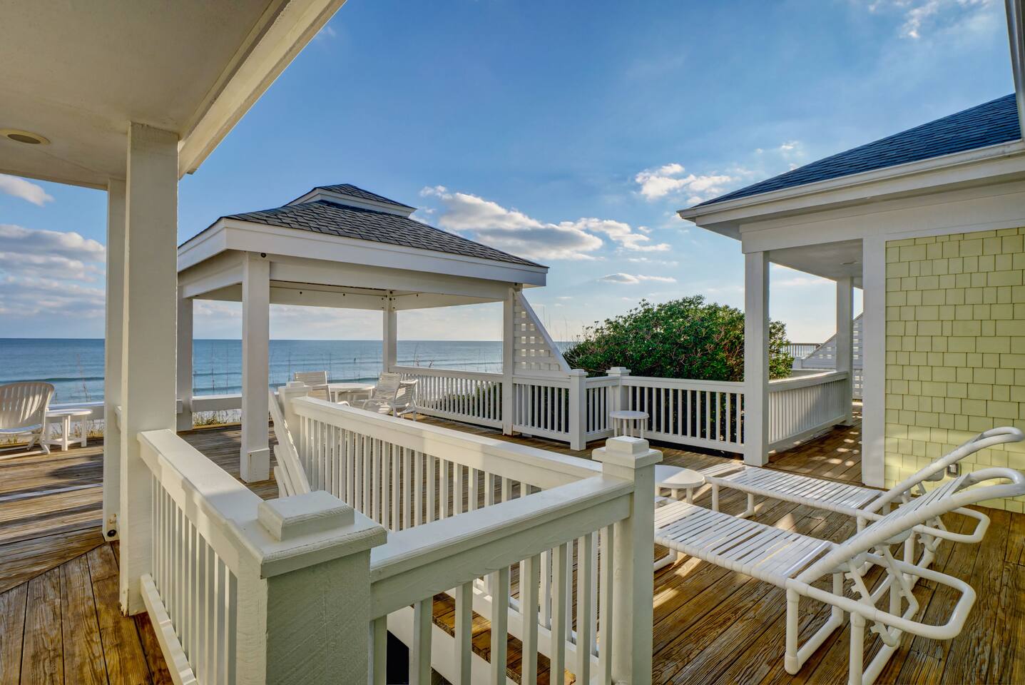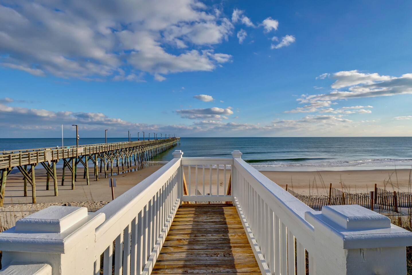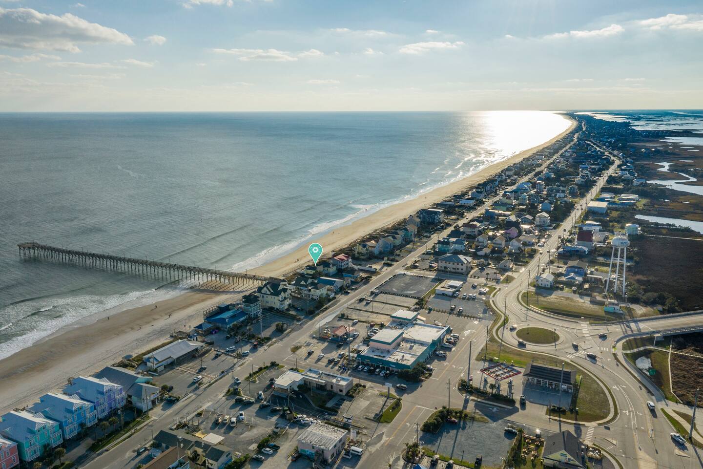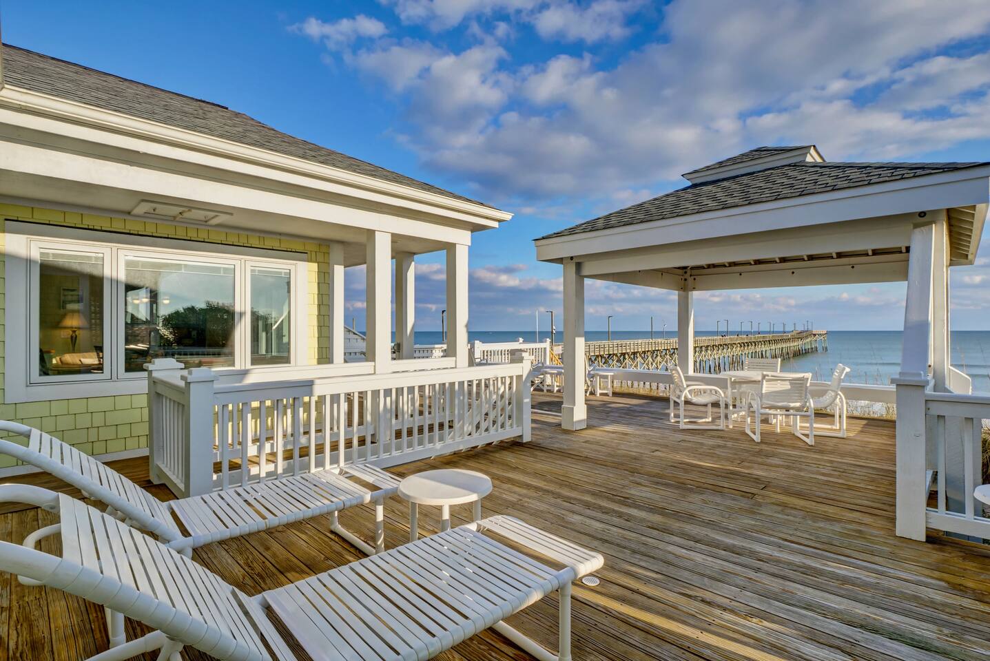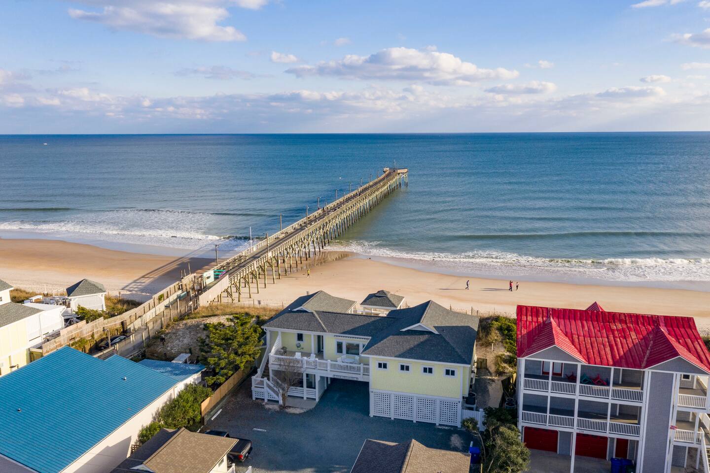 Excellent views of the ocean from the spacious deck in the middle of the island. Enjoy your morning coffee & watch the dolphins swim by as you relax in the wonderful gazebo. Beach & pier can be had from the 3 sundecks complete with hot tub, deck furniture & benches. Transportation is not needed as Surf City Heart is centrally located within walking distance of restaurants, shopping, groceries, parks/playground boat tours and more. Direct private beach access from the back deck.