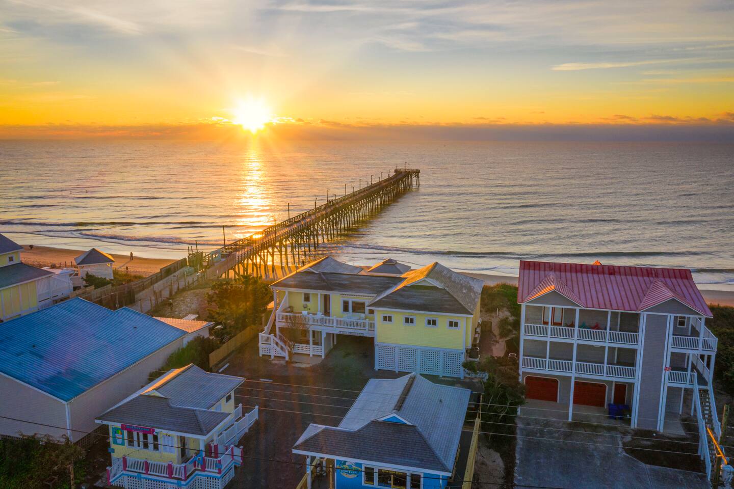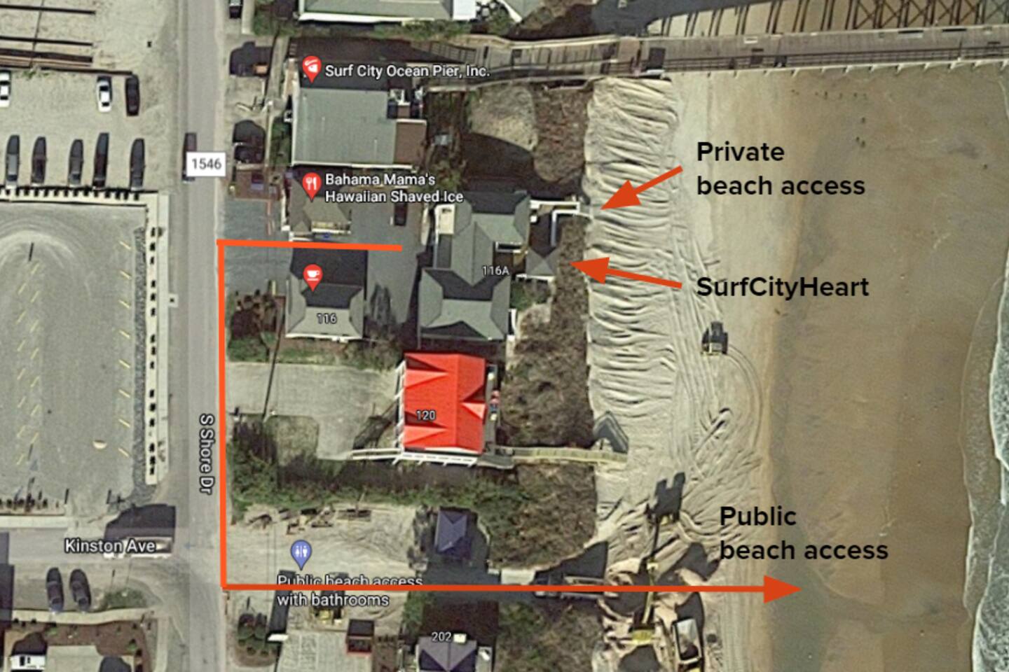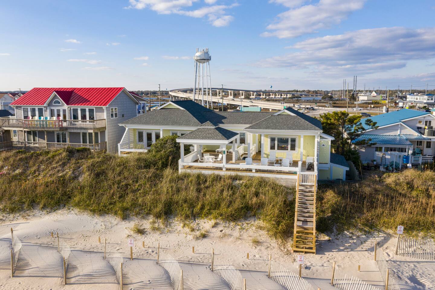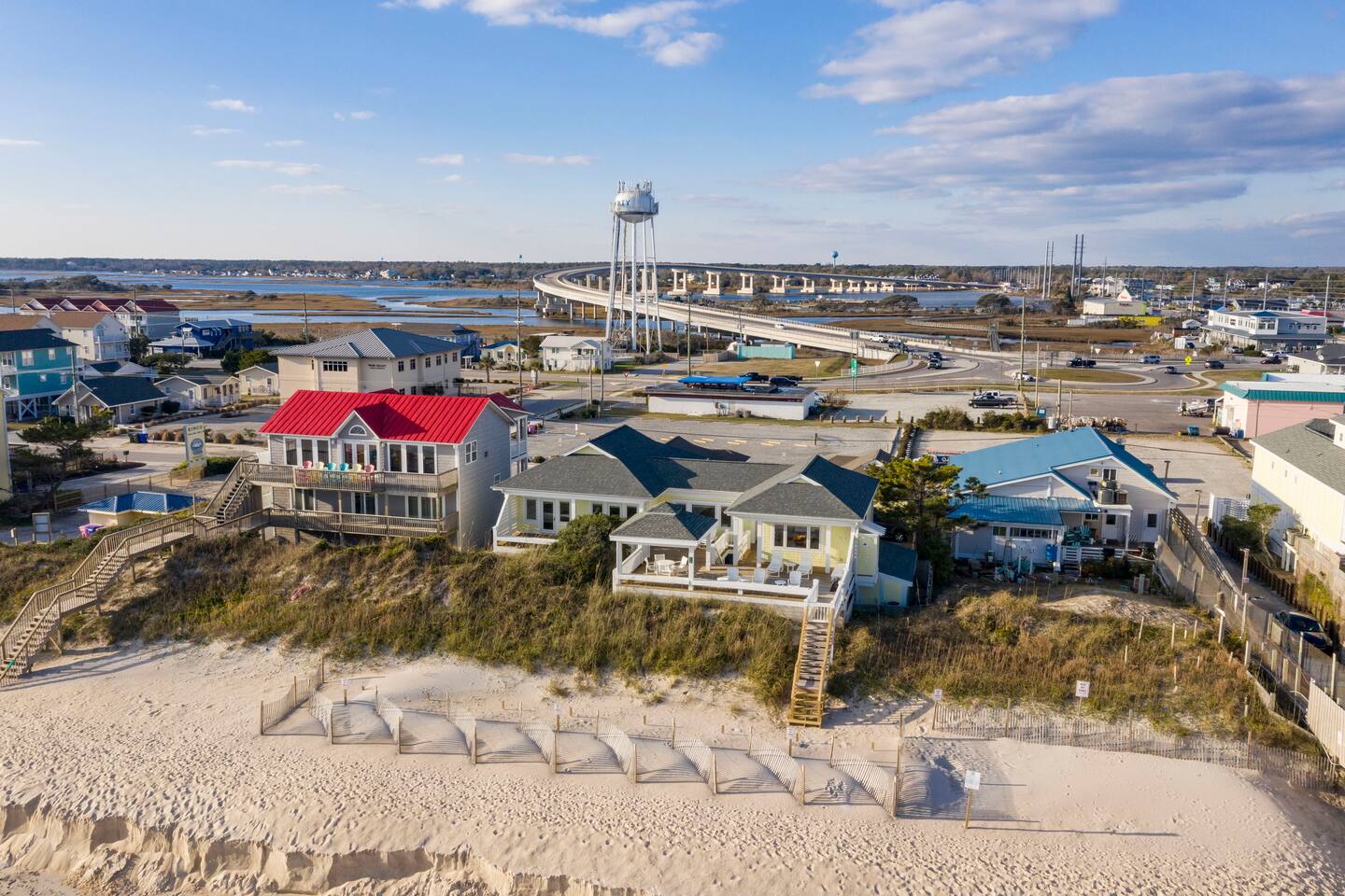 Excellent views of the ocean from the spacious deck in the middle of the island. Enjoy your morning coffee & watch the dolphins swim by as you relax in the wonderful gazebo. Beach & pier can be had from the 3 sundecks complete with hot tub, deck furniture & benches. Transportation is not needed as Surf City Heart is centrally located within walking distance of restaurants, shopping, groceries, parks/playground boat tours and more. Direct private beach access from the back deck.