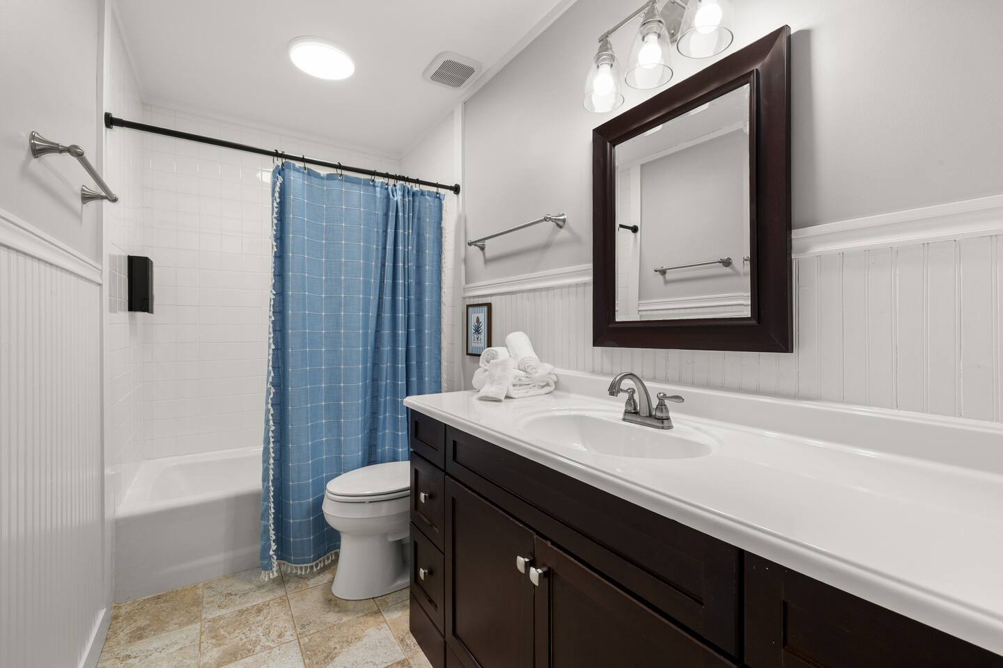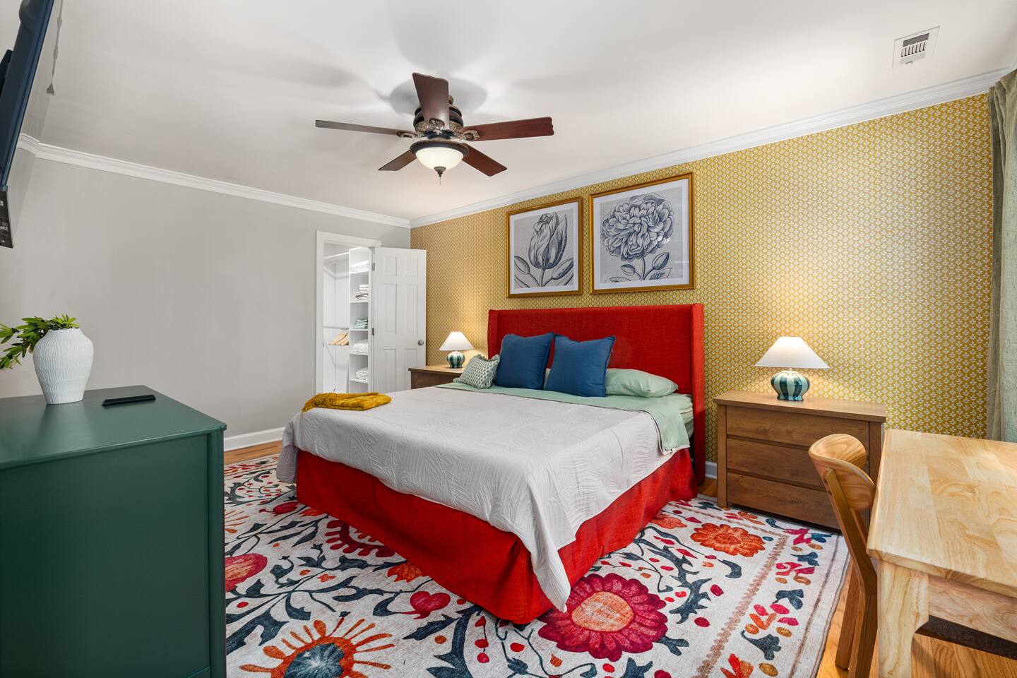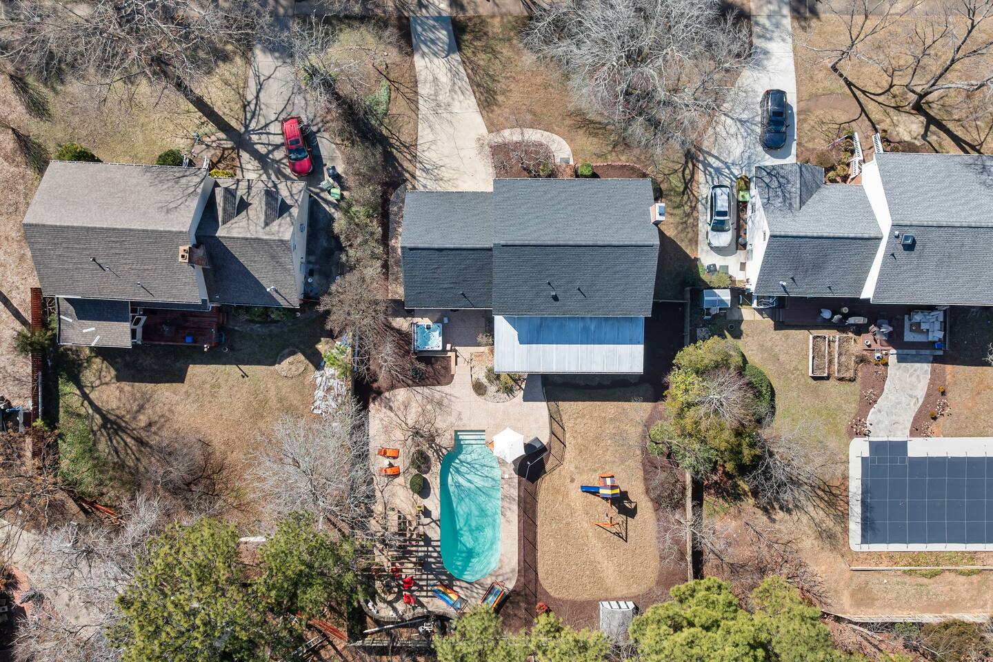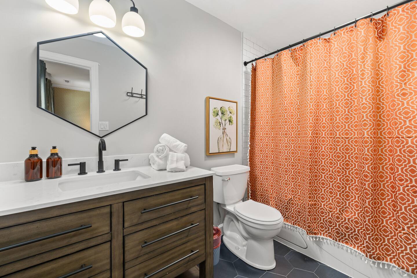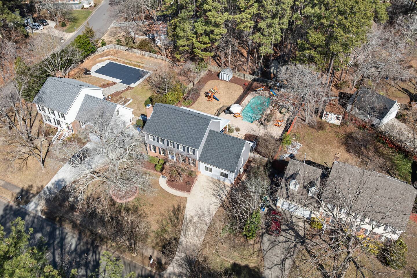 Designed with playful energy and bold personality, this North Raleigh retreat brings everyone together with a private pool, hot tub, backyard playground, cinema room, and sunlit game space. With five bedrooms and space for up to 17 guests, it’s built for group stays filled with connection, celebration, and shared moments. ⦿ Sunroom Game Room: A stunning, window-wrapped hub featuring shuffleboard, foosball, and a dedicated game table with panoramic backyard views. ⦿ Private Pool & Hot Tub: Enjoy our sparkling saltwater pool (open April through September) or the pre-heated hot tub, available year-round. Both are professionally maintained for your safety. ⦿ Home Cinema Experience: Cinematic nights featuring a 120" screen, professional JBL audio system, and a popcorn machine. ⦿ Outdoor Oasis: Includes a private playground, gazebo, fire pit, and propane grill. We provide high-quality linens, towels, soaps, detergent, and propane for your stay. ⦿ Work & Connectivity: High-speed WiFi is available throughout. A desk and chairs are located in the Master Bedroom for a quiet workspace. ⦿ Tesla EV Charging: On-site Universal Tesla Level 2 Charger (compatible with all EV models) available for $20/night. ⦿ Gourmet Living: A fully equipped chef’s kitchen, welcoming dining area, and a breakfast nook designed for group gatherings. Bed and Bath Configuration With 5 bedrooms and 2.5 bathrooms, our layout ensures everyone has a comfortable space. UPSTAIRS (2nd Floor): ⦿ Master Bedroom: King bed, ensuite bath with Jacuzzi/shower, and a private workspace. ⦿ Bedroom 2 & 3: Each features a comfortable Queen bed. ⦿ Bedroom 4: Full-over-Full bunk bed with trundle (sleeps up to 5). ⦿ Bedroom 5: Three Full beds (sleeps up to 6). ⦿ Common Bath: Full bathroom in the hallway with a shower and tub. DOWNSTAIRS (1st Floor): ⦿ Half Bath: Conveniently located near the living, cinema, and game areas.