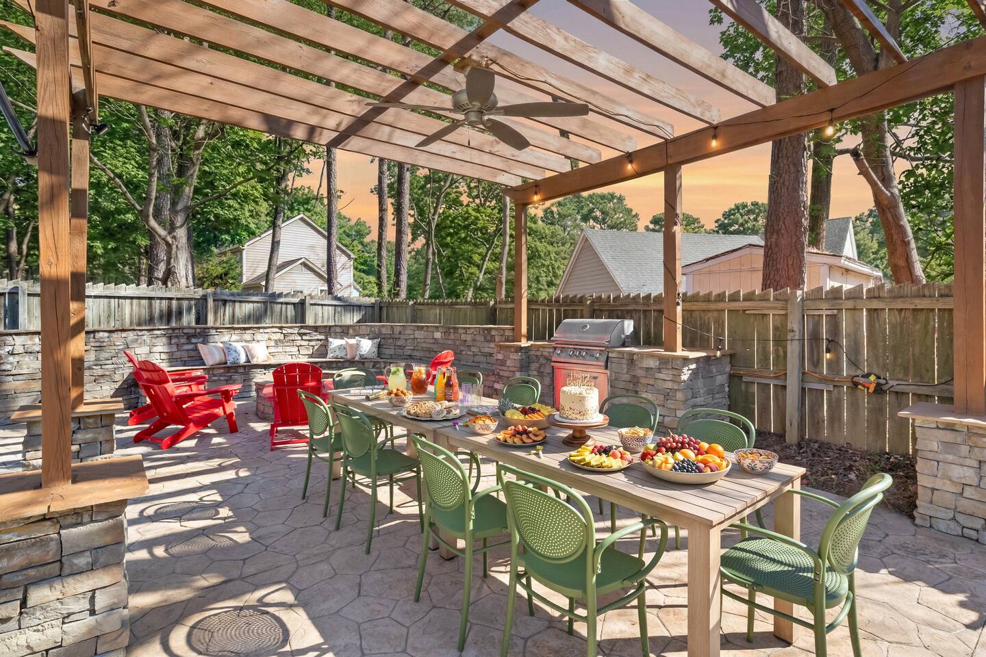 Experience comfort and fun at Aurora Retreat, a luxury escape for up to 17 guests. Perfect for large groups and multi-generational family gatherings, this haven features a Private Pool (open Apr–Sep), Year-Round Hot Tub, Home Cinema, Sunroom Game Room, Playground, and Universal Tesla Level 2 EV Charger. Blending Southern charm with modern comfort, every space is designed for creating shared memories and deepening family connections in the heart of Raleigh.